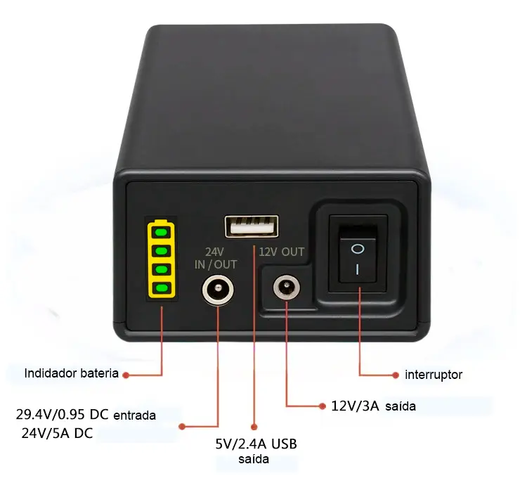 BATERIA 12V / 24V, 44.800 mAh, que liga o motor do braço rotativo.