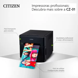 Num segmento totalmente novo dentro da gama Citizen, esta leve e compacta impressora fotográfica produz fotografias impressionantes, tanto a fotógrafos e entusiastas, como aos que procuram uma solução acessível para aplicações profissionais e comerciais. A CZ-01 pesa apenas 5,8Kg. 8Kg menos que a impressora fotográfica Citizen CY-02, facilitando assim o transporte e o manuseamento. Além disso, ocupa apenas 31% do volume e 44% do tamanho da CY-02.