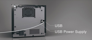 Equipado com uma interface USB para fornecer energia elétrica quando um dispositivo tipo tablet é conectado.