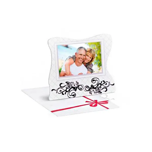 Moldura rígida com suporte e filme adesivo na parte superior para poder personalizar com a fotografia que mais desejes e para poder colocar uma foto ou moldura fotográfica original nas estantes da tua casa ou no teu escritório.