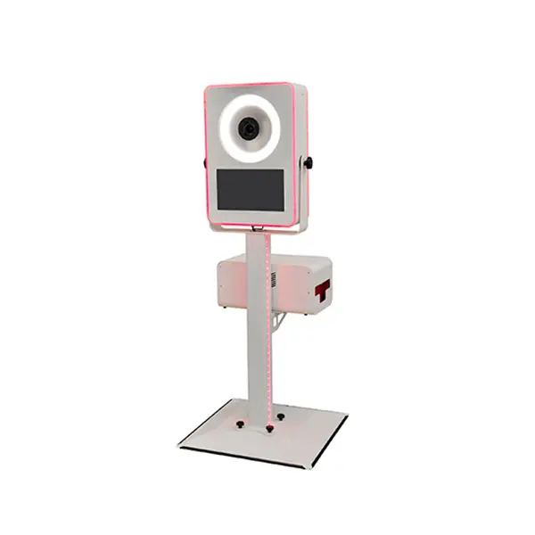 Photobooth inovador e eficaz com regulação suave da inclinação do corpo.