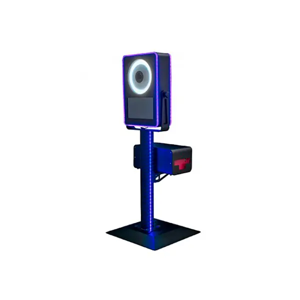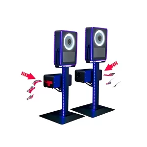 O corpo do equipamento tem dimensões 46x27x67cm que o torna em um photobooth extremamente compacto.