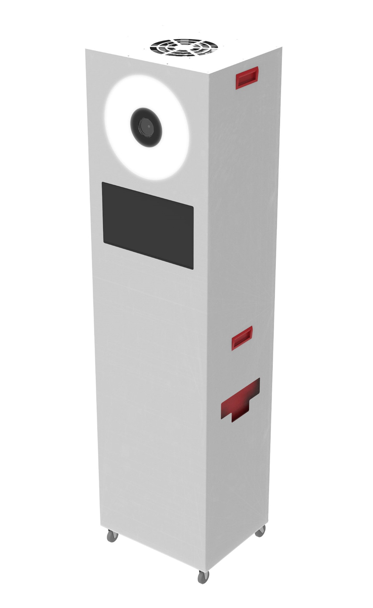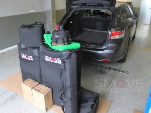 O tamanho do equipamento também é importante. Um único segmento da cabine mede 46 x 86 x 38 cm, o que torna nossa solução excepcionalmente compacta. Nem todos têm uma van grande para transportar uma cabine fotográfica.